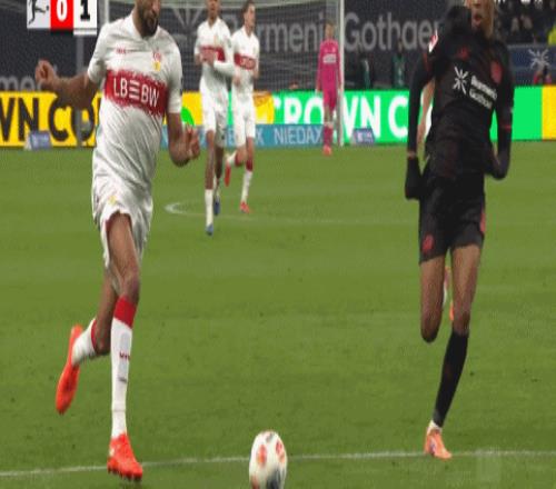 易边再战,4球领先的斯图加特收着踢,勒沃库森这边还是机会寥寥,直到第64分钟,勒沃库森前场左侧压上,连续的配合,加西亚禁区前沿策应直塞,蒂尔曼插上突入禁区抢点时被查伯特推倒,主裁果断吹罚了点球。格里马尔多操刀主罚稳稳命中,勒沃库森终于是1:4扳回一球。之后勒沃库森又是一阵低迷,第86分钟,随着杰利奇禁区弧顶处还算不错的机会球踢飞后,勒沃库森主场1:4惨败。